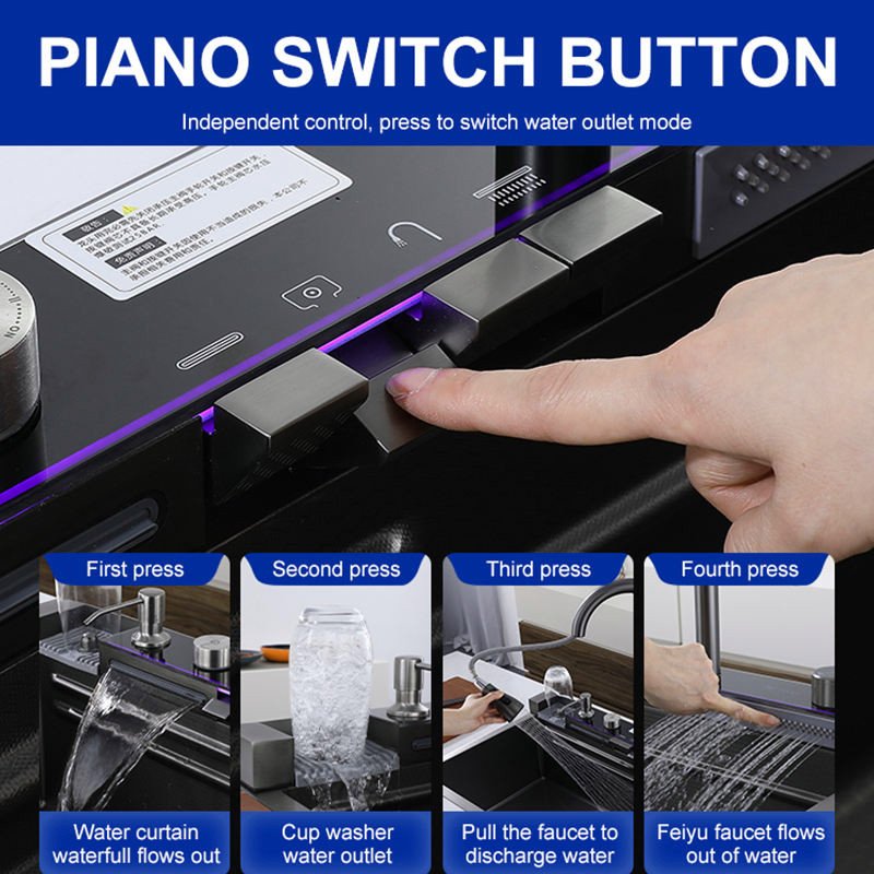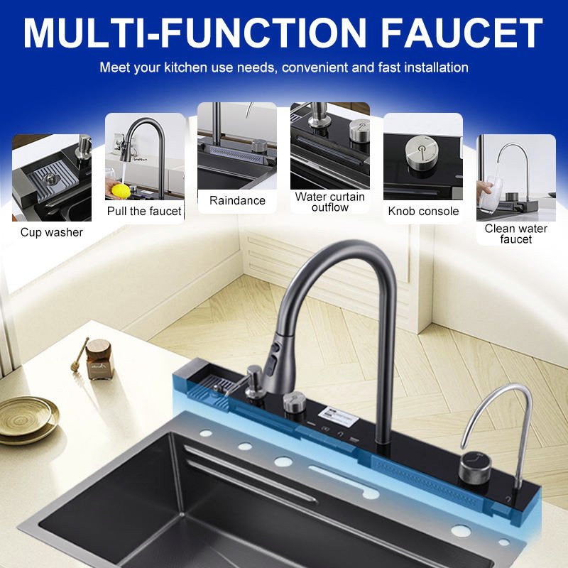 Handmade Smart Waterfall Multifunction Kitchen Sink-7546 |
