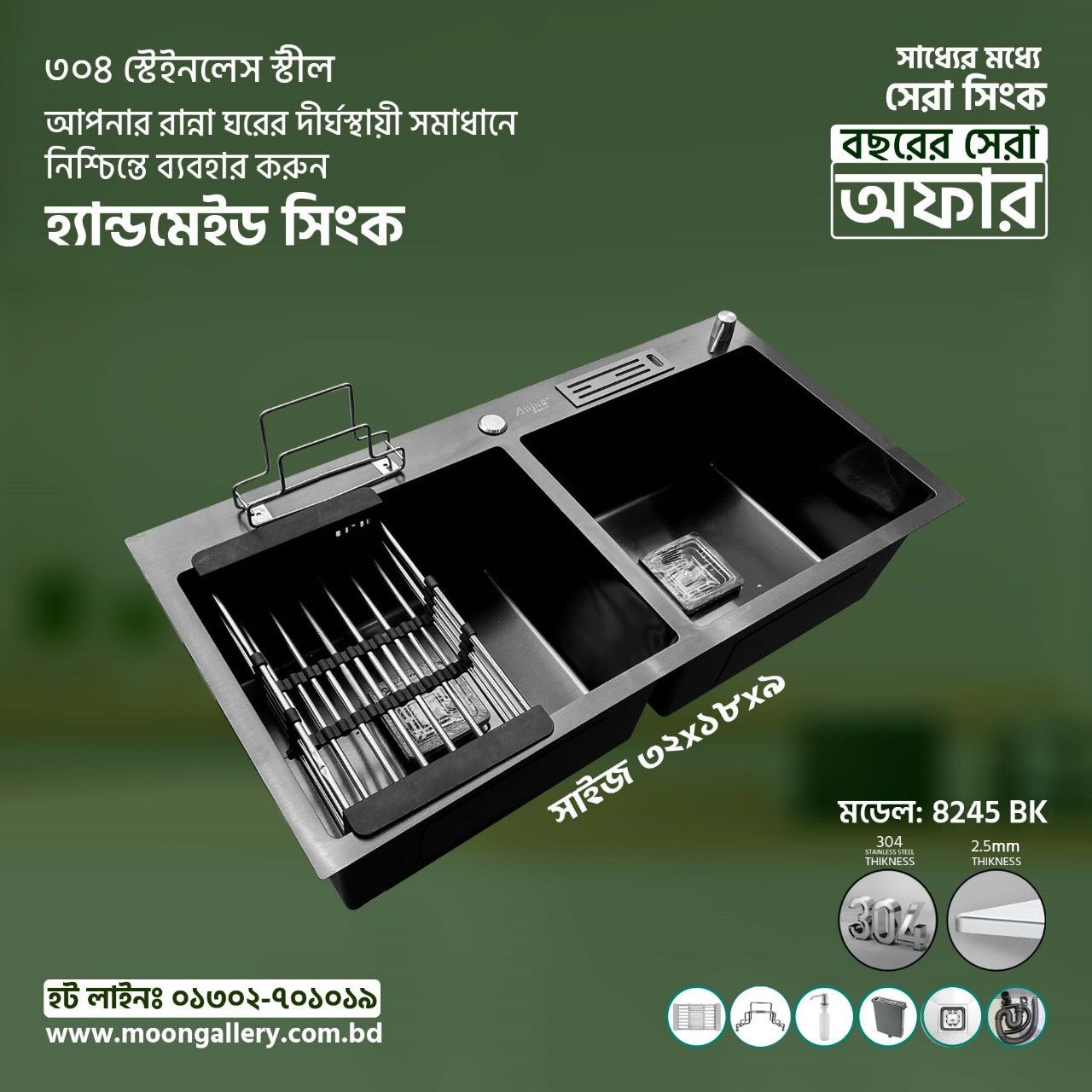 304 ফুডগ্রেড বৈশিষ্ট্য স্বাথ্যঝুকি থেকে পরিবারকে নিরাপদ রাখে।