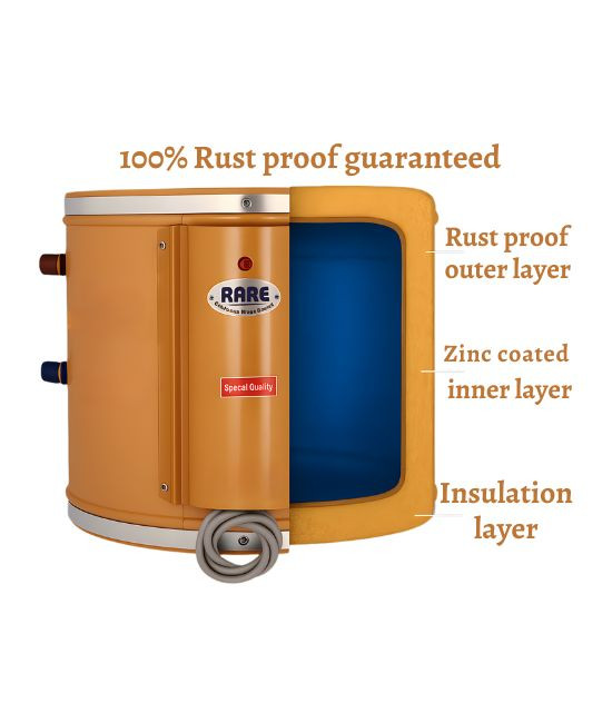 8. Zinc coated rust proof tank 9. 30 to 80 degree Celsius, Adjustable Temperature 10. Pressure Relief valve - 125 PSI or 210 degree F for Safety. WITHOUT INSTALLATION AND EXTRA PARTS.